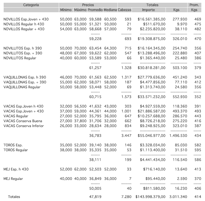 PRECIOS POR CATEGORIA RESOL-2018-32-APN-SGA#MPYT DESDE EL MIÉRCOLES 12/06/2019 AL MIÉRCOLES 12/06/2019 EN EL MERCADO DE LINIERS
