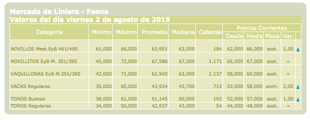 MercadosCierre mercado de hacienda 2 de agosto de 2019FacebookTwitterWhatsAppTelegramEmailImpresión Cierre mercado de hacienda de LiniersMás información agropecuaria cliqueá aquí