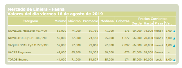 MercadosCierre mercado de hacienda 16 de agosto de 2019FacebookTwitterWhatsAppTelegramEmailImpresión Cierre mercado de hacienda de LiniersMás información agropecuaria cliqueá aquí