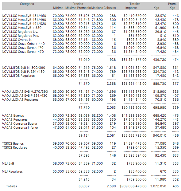 MercadosCierre mercado de hacienda 20 de agosto de 2019FacebookTwitterWhatsAppTelegramEmailImpresión PRECIOS DEFINITIVOS POR CATEGORÍA EN EL MERCADO DE HACIENDA DE LINIERSMás información agropecuaria cliqueá aquí