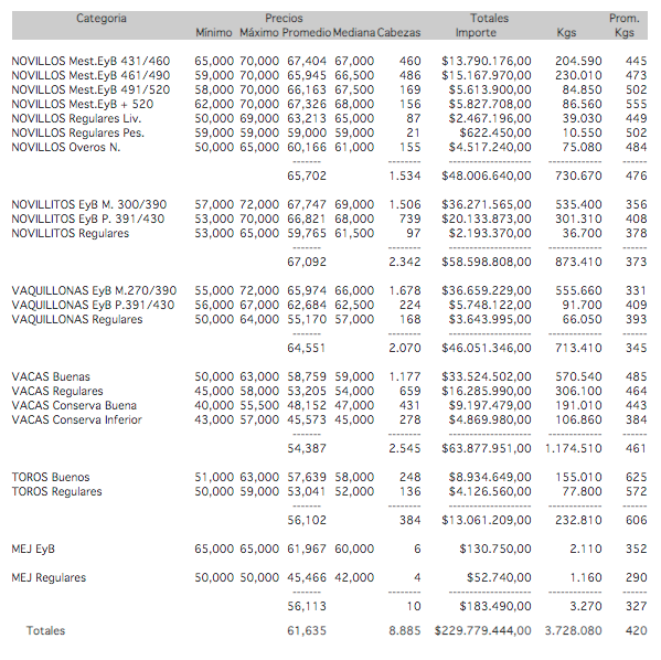 MercadosCierre mercado de hacienda 4 de septiembre de 2019FacebookTwitterWhatsAppTelegramEmailImpresión PRECIOS DEFINITIVOS POR CATEGORIA EN EL MERCADO DE LINIERS MIÉRCOLES 04/09/2019Más información agropecuaria cliqueá aquí