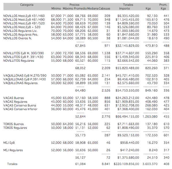 MercadosCierre mercado de hacienda 6 de septiembre de 2019FacebookTwitterWhatsAppTelegramEmailImpresión PRECIOS DEFINITIVOS POR CATEGORIA EN EL MERCADO DE LINIERSVIERNES 06/09/2019 Más información agropecuaria cliqueá aquí