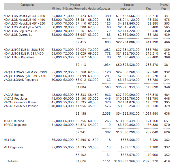 MercadosCierre mercado de hacienda 11 de septiembre de 2019FacebookTwitterWhatsAppTelegramEmailImpresión PRECIOS DEFINITIVOS POR CATEGORIA PARA EL MIÉRCOLES 11/09/2019MERCADO DE LINIERS Más noticias agropecuarias cliqueá aquí