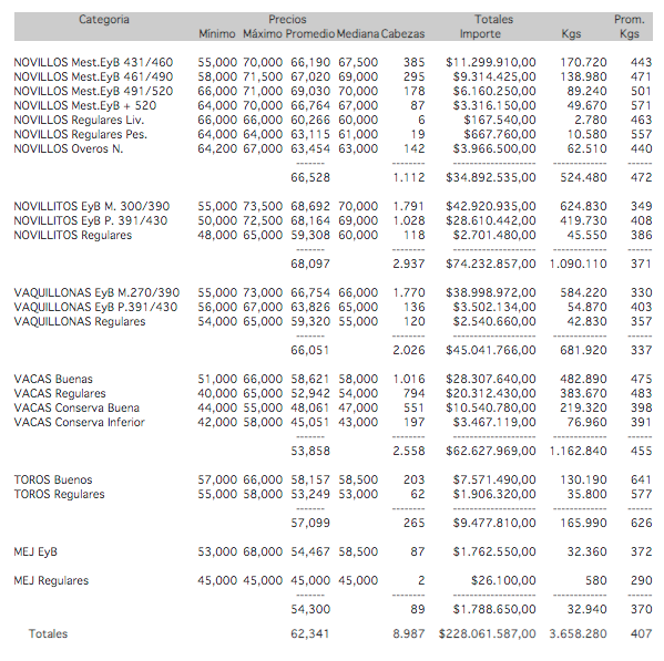 MercadosCierre mercado de hacienda 13 de septiembre de 2019FacebookTwitterWhatsAppTelegramEmailImpresión PRECIOS DEFINITIVOS POR CATEGORIA PARA EL VIERNES 13/09/2019MERCADO DE LINIERSMás información agropecuaria cliqueá aquí