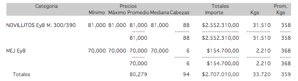 PRECIOS DEFINITIVOS POR CATEGORIA PARA EL JUEVES 31/10/2019