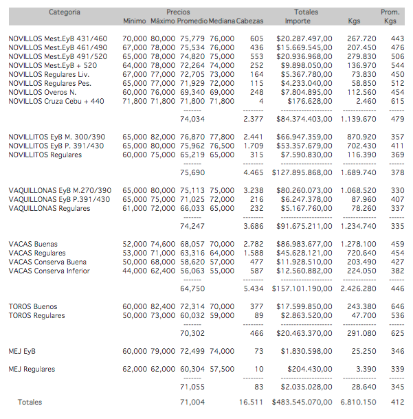 MercadosCierre mercado de hacienda 1 de noviembre de 2019FacebookTwitterWhatsAppTelegramEmailImpresión PRECIOS DEFINITIVOS POR CATEGORIA PARA EL VIERNES 01/11/2019MERCADO DE LINIERSMás información agropecuaria cliqueá aquí