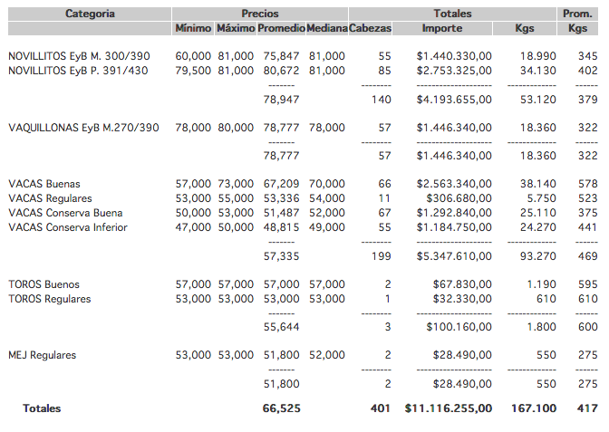 MercadosCierre mercado de hacienda 25 de noviembre de 2019FacebookTwitterWhatsAppTelegramEmailImpresión PRECIOS DEFINITIVOS POR CATEGORIA PARA EL LUNES 25/11/2019MERCADO DE LINIERSMás información agropecuaria cliqueá aquí