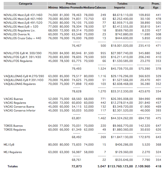 MercadosCierre mercado de hacienda 26 de noviembre de 2019FacebookTwitterWhatsAppTelegramEmailImpresión PRECIOS DEFINITIVOS POR CATEGORIA PARA EL MARTES 26/11/2019MERCADO DE LINIERS Más información agropecuaria cliqueá aquí