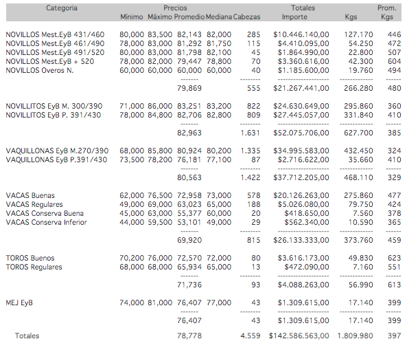 MercadosCierre mercado de hacienda 28 de noviembre de 2019FacebookTwitterWhatsAppTelegramEmailImpresión PRECIOS DEFINITIVOS POR CATEGORIA PARA EL JUEVES 28/11/2019MERCADO DE LINIERS Más información agropecuaria cliqueá aquí