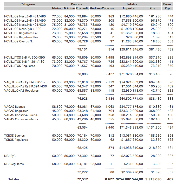MercadosCierre mercado de hacienda 4 de diciembre de 2019FacebookTwitterWhatsAppTelegramEmailImpresión PRECIOS POR CATEGORIA PARA EL MIÉRCOLES 04/12/2019MERCADO DE LINIERSMás información agropecuaria cliqueá aquí