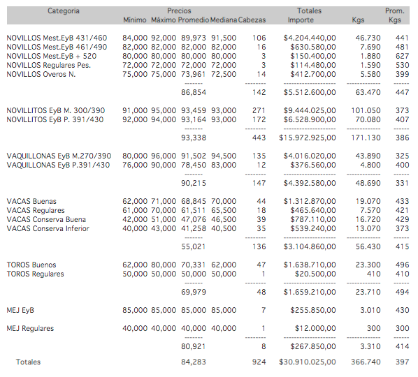 ClimaCierre mercado de hacienda 31 de diciembre de 2019FacebookTwitterWhatsAppTelegramEmailImpresión PRECIOS DEFINITIVOS POR CATEGORIA PARA EL LUNES 30/12/2019MERCADO DE LINIERSMás información agropecuaria cliqueá aquí