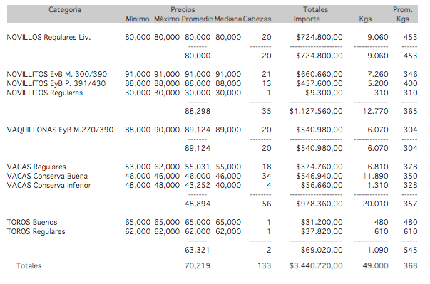 MercadosCierre mercado de hacienda 10 de enero de 2020FacebookTwitterWhatsAppTelegramEmailImpresión PRECIOS DEFINITIVOS POR CATEGORIA PARA EL JUEVES 09/01/2020MERCADO DE LINIERSMás información agropecuaria cliqueá aquí
