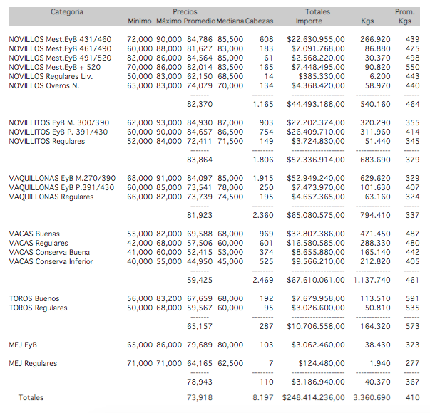 GanaderíaCierre mercado de hacienda 11 de enero de 2020FacebookTwitterWhatsAppTelegramEmailImpresión PRECIOS POR CATEGORIA PARA EL VIERNES 10/01/2020MERCADO DE LINIERSMás información agropecuaria cliqueá aquí