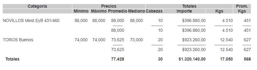 MercadosCierre mercado de hacienda 4 de febrero de 2020FacebookTwitterWhatsAppTelegramEmailImpresión PRECIOS DEFINITIVOS POR CATEGORIA DESDE EL LUNES 03/02/2020MERCADO DE LINIERSMás información agropecuaria cliqueá aquí