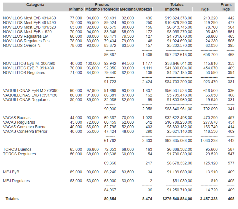 MercadosCierre mercado de hacienda 11 de febrero de 2020FacebookTwitterWhatsAppTelegramEmailImpresión PRECIOS DEFINITIVOS POR CATEGORÍA DESDE EL MARTES 11/02/2020MERCADO DE LINIERS Más infiormación agropecuaria cliqueá aquí