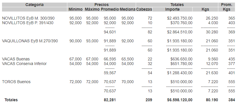 MercadosCierre mercado de hacienda 18 de febrero de 2020FacebookTwitterWhatsAppTelegramEmailImpresión PRECIOS DEFINITIVOS POR CATEGORIA PARA EL LUNES 17/02/2020MERCADO DE LINIERSFuente: SMNMás información agropecuaria cliqueá aquí