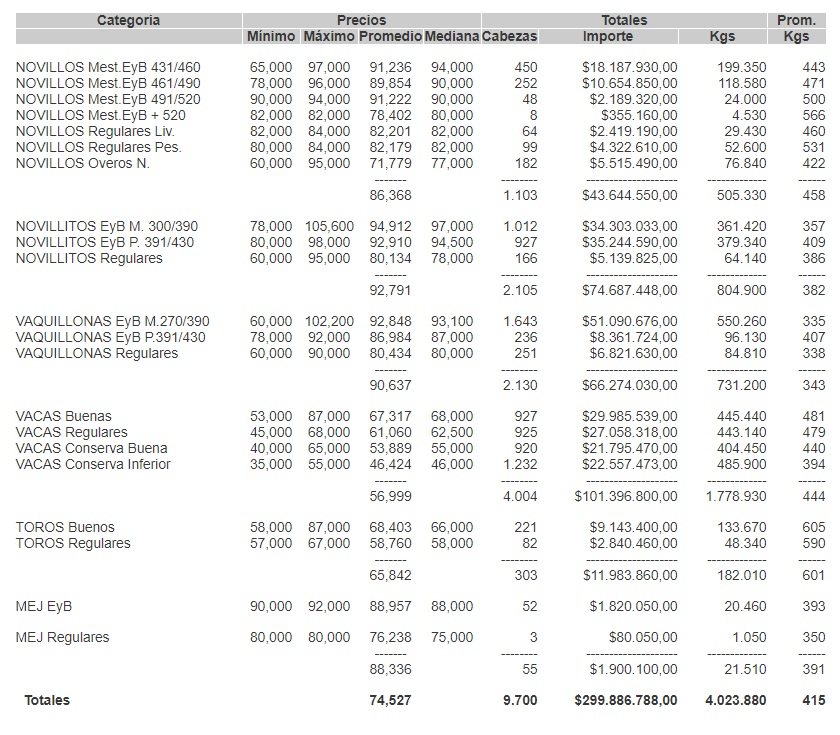 MercadosCierre mercado de hacienda 5 de marzo de 2020FacebookTwitterWhatsAppTelegramEmailImpresión PRECIOS DEFINITIVOS POR CATEGORÍA DESDE EL MIÉRCOLES 04/03/2020Más información agropecuaria cliqueá aquí