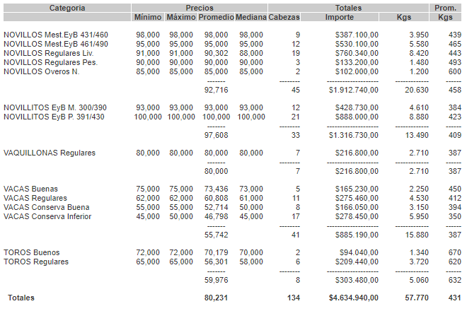 MercadosCierre Mercado de Hacienda 12 de marzo de 2020FacebookTwitterWhatsAppTelegramEmailImpresión PRECIOS DEFINITIVOS POR CATEGORÍA MIÉRCOLES 11/03/2020 Fuente: Mercado de LiniersMás información agropecuaria cliqueá aquí