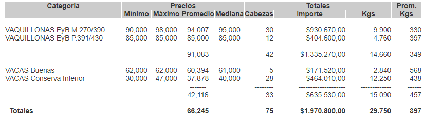 MercadosCierre mercado de hacienda 20 de marzo de 2020FacebookTwitterWhatsAppTelegramEmailImpresión PRECIOS DEFINITIVOS POR CATEGORÍA PARA EL JUEVES 19/03/2020Más información agropecuaria cliqueá aquí