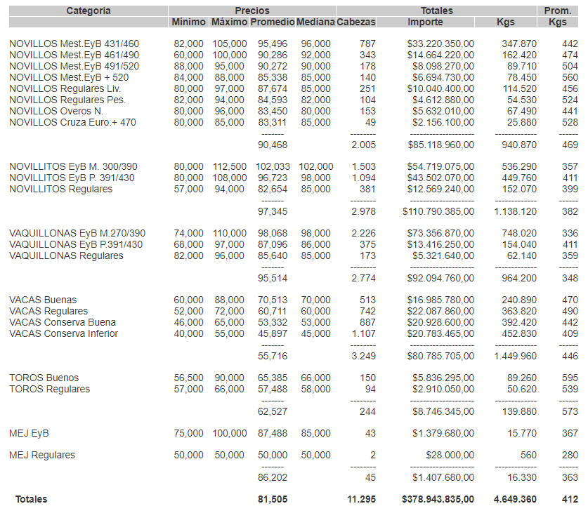 MercadosCierre mercado de hacienda 26 de marzo de 2020FacebookTwitterWhatsAppTelegramEmailImpresión PRECIOS DEFINITIVOS POR CATEGORIA PARA EL MIÉRCOLES 25/03/2020Más información agropecuaria cliqueá aquí