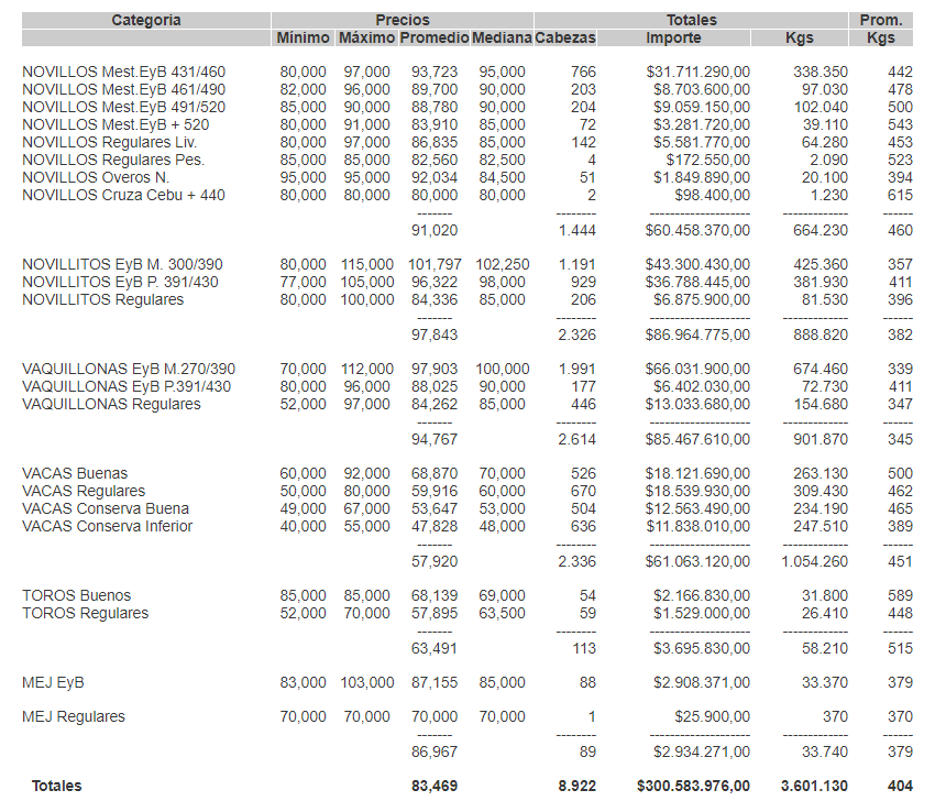 MercadosCierre mercado de hacienda 28 de marzo de 2020FacebookTwitterWhatsAppTelegramEmailImpresión PRECIOS DEFINITIVOS POR CATEGORÍA PARA EL VIERNES 27/03/2020MERCADO DE LINIERS Más información agropecuaria cliqueá aquí