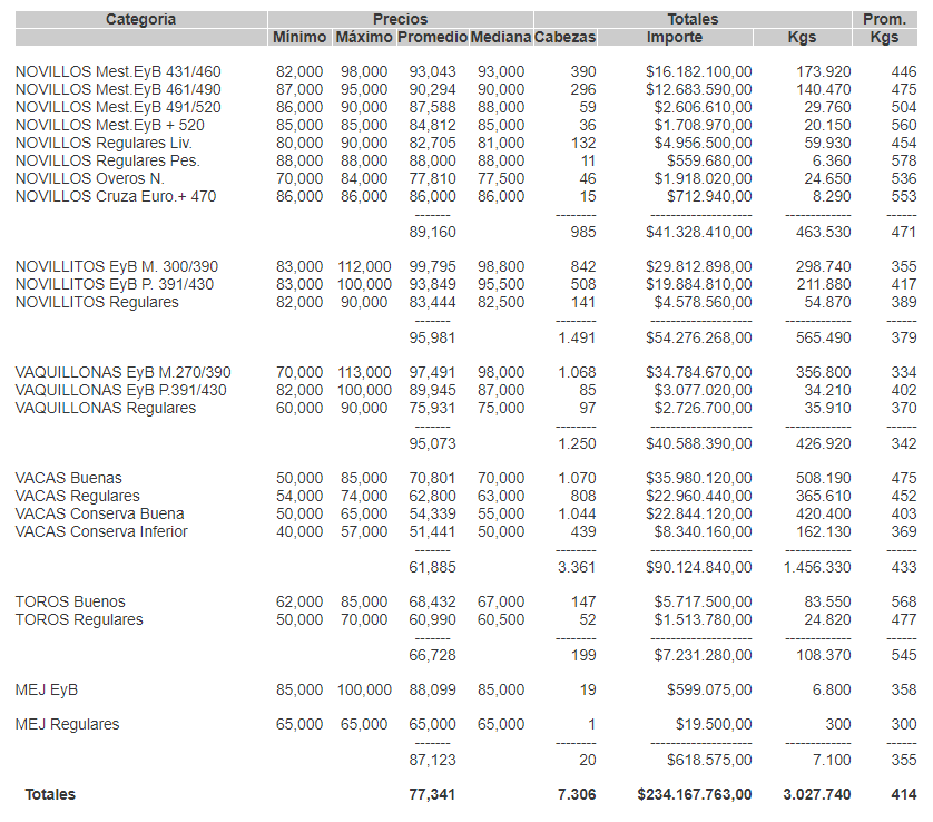 MercadosCierre mercado de hacienda 14 de abril de 2020FacebookTwitterWhatsAppTelegramEmailImpresión PRECIOS POR CATEGORÍA PARA EL MARTES 14/04/2020MERCADO DE LINIERSMás información agropecuaria cliqueá aquí