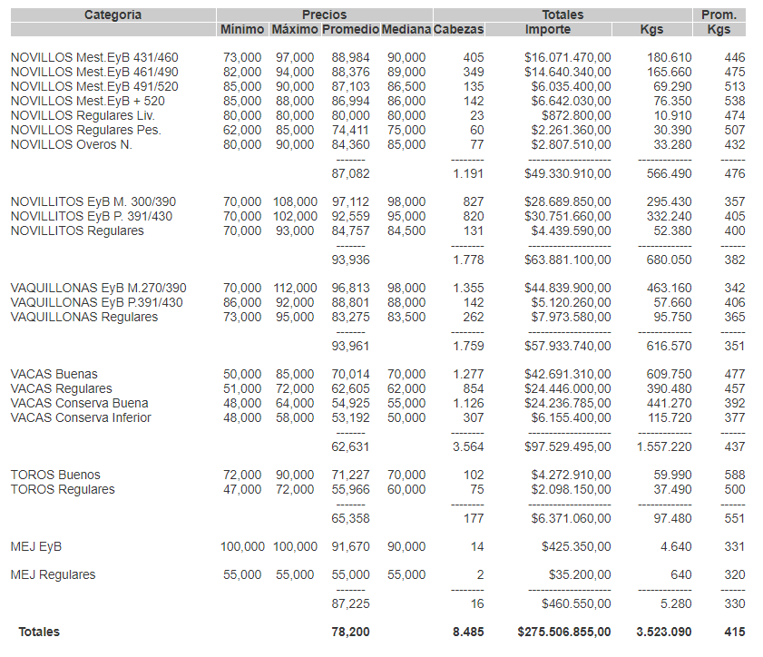 MercadosCierre mercado de hacienda 15 de abril de 2020FacebookTwitterWhatsAppTelegramEmailImpresión PRECIOS POR CATEGORÍA PARA EL MIÉRCOLES 15/04/2020MERCADO DE LINIERSMás información agropecuaria cliqueá aquí