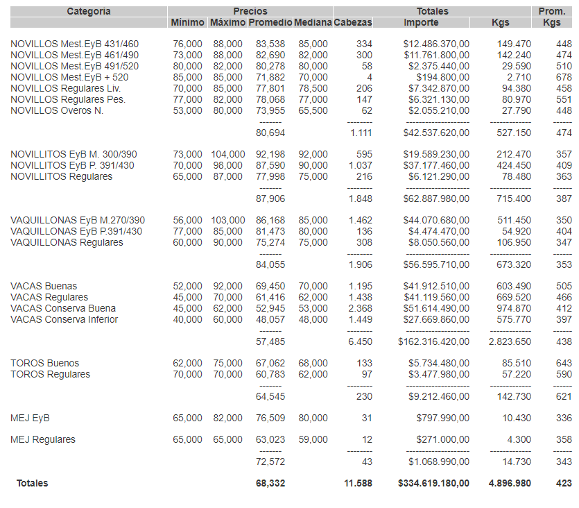 MercadosCierre mercado de hacienda 22 de abril de 2020FacebookTwitterWhatsAppTelegramEmailImpresión PRECIOS POR CATEGORÍA PARA EL MIÉRCOLES 22/04/2020MERCADO DE LINIERSMás información agropecuaria cliqueá aquí