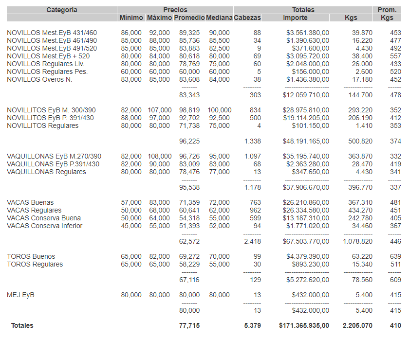 MercadosCierre mercado de hacienda 28 de abril de 2020FacebookTwitterWhatsAppTelegramEmailImpresión PRECIOS POR CATEGORÍA PARA EL MARTES 28/04/2020MERCADO DE LINIERSMás información agropecuaria cliqueá aquí