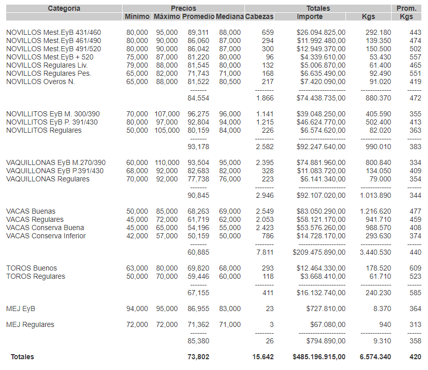 MercadosCierre mercado de hacienda 5 de mayo de 2020FacebookTwitterWhatsAppTelegramEmailImpresión PRECIOS DEFINITIVOS POR CATEGORÍA PARA EL MARTES 05/05/2020MERCADO DE LINIERSMás información agropecuaria cliqueá aquí