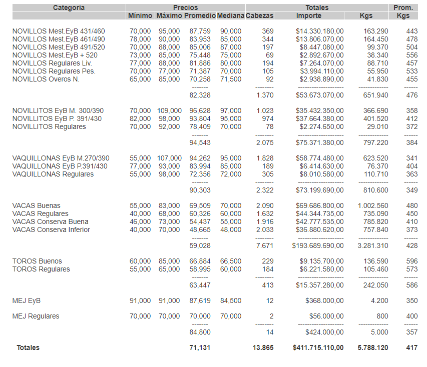 MercadosCierre mercado de hacienda 12 de mayo de 2020FacebookTwitterWhatsAppTelegramEmailImpresión PRECIOS DEFINITIVOS POR CATEGORÍA PARA EL MARTES 12/05/2020MERCADO DE LINIERS Más información agropecuaria cliqueá aquí