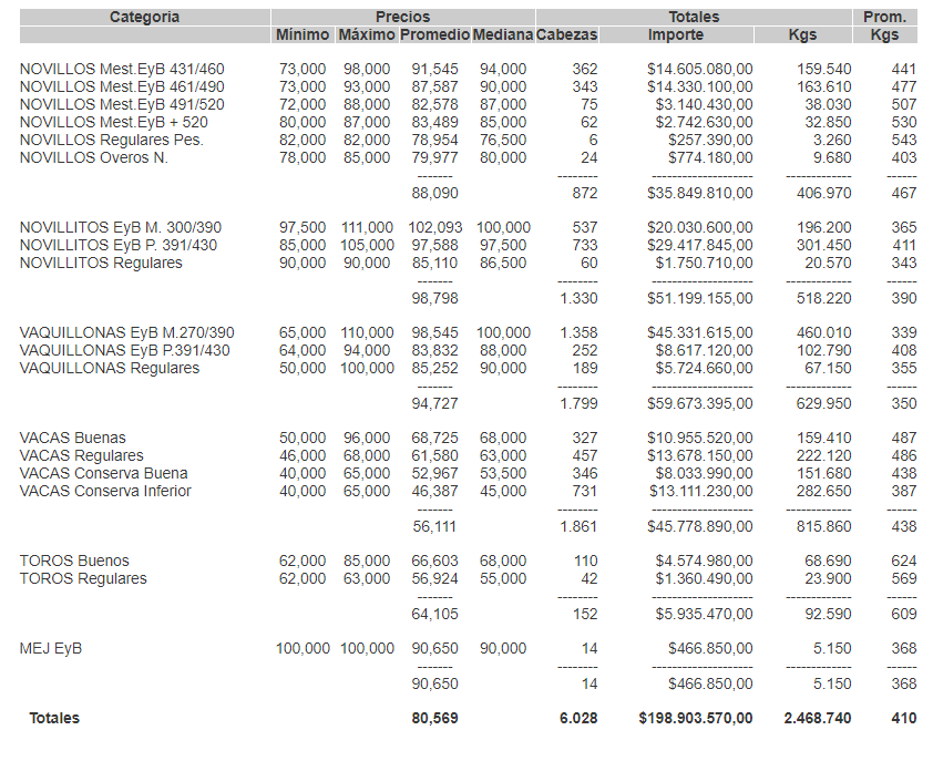 MercadosCierre mercado de hacienda 22 de mayo de 2020FacebookTwitterWhatsAppTelegramEmailImpresión PRECIOS DEFINITIVOS POR CATEGORÍA DESDE EL VIERNES 22/05/2020 AL VIERNES 22/05/2020MERCADO DE LINIERS Más información agropecuaria cliqueá aquí