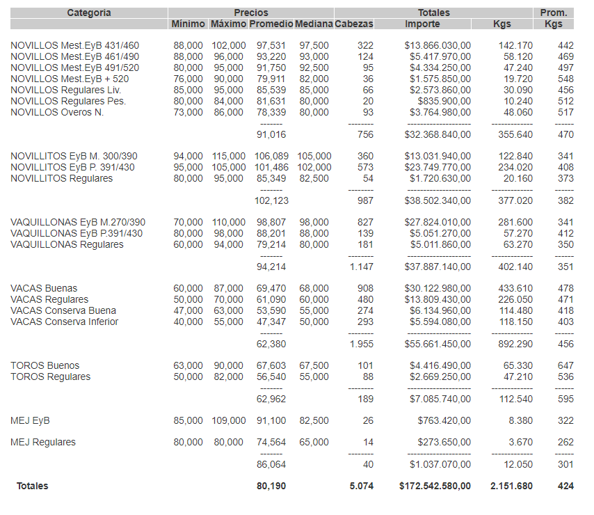 MercadosCierre mercado de hacienda 24 de junio de 2020FacebookTwitterWhatsAppTelegramEmailImpresión PRECIOS DEFINITIVOS POR CATEGORIA PARA EL MIÉRCOLES 24/06/2020MERCADO DE LINIERSMás información agropecuaria cliqueá aquí