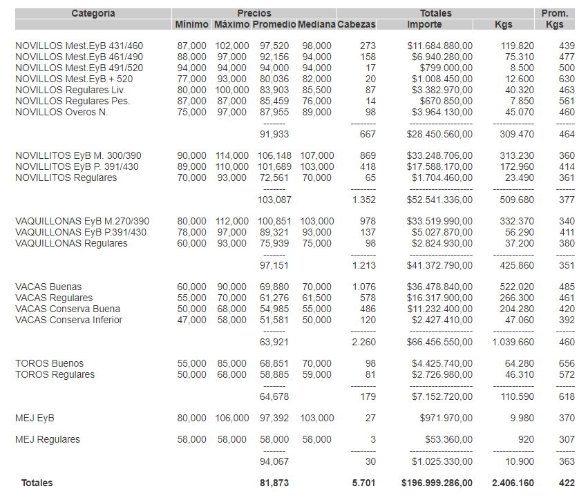 MercadosCierre mercado de hacienda 1 de julio de 2020FacebookTwitterWhatsAppTelegramEmailImpresión PRECIOS DEFINITIVOS POR CATEGORÍA PARA EL MIÉRCOLES 01/07/2020MERCADO DE LINIERSMás información agropecuaria cliqueá aquí