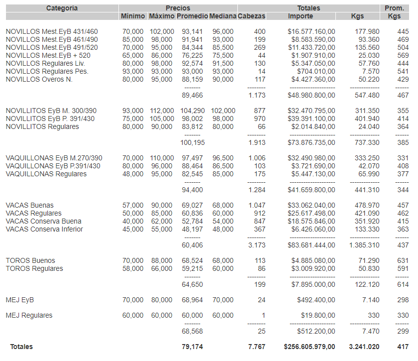 MercadosCierre mercado de hacienda 8 de julio de 2020FacebookTwitterWhatsAppTelegramEmailImpresión PRECIOS DEFINITIVOS POR CATEGORÍA PARA EL MIÉRCOLES 08/07/2020MERCADO DE LINIERSMás información agropecuaria cliqueá aquí