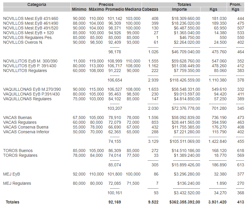 ClimaCierre mercado de hacienda 22 de agosto de 2020FacebookTwitterWhatsAppTelegramEmailImpresión PRECIOS POR CATEGORÍA PARA EL VIERNES 21/08/2020MERCADO DE LINIERSMás información agropecuaria cliqueá aquí