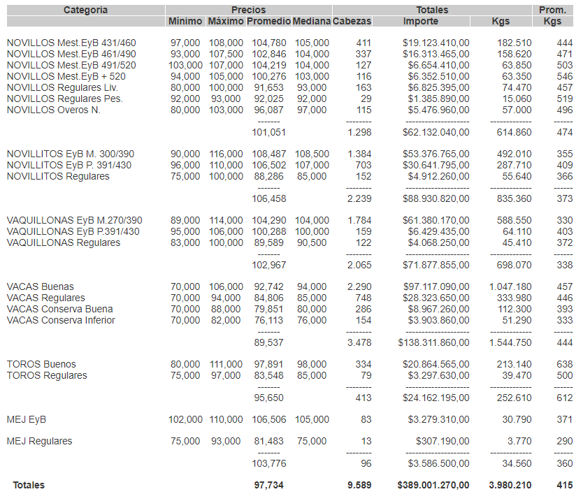 MercadosCierre Mercado de Hacienda 8 de octubre de 2020FacebookTwitterWhatsAppTelegramEmailImpresión PRECIOS DEFINITIVOS POR CATEGORIA PARA EL MIÉRCOLES 07/10/2020MERCADO DE LINIERSMás información agropecuaria cliqueá aquí