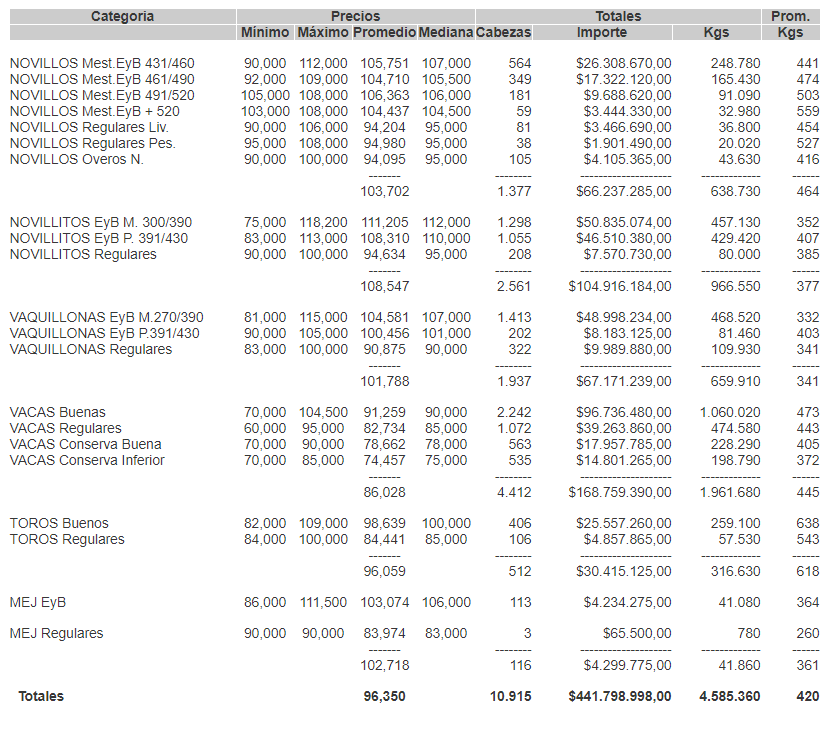 MercadosCierre Mercado de Hacienda 9 de octubre de 2020FacebookTwitterWhatsAppTelegramEmailImpresión PRECIOS POR CATEGORIA PARA EL VIERNES 09/10/2020MERCADO DE LINIERSMás información agropecuaria cliqueá aquí