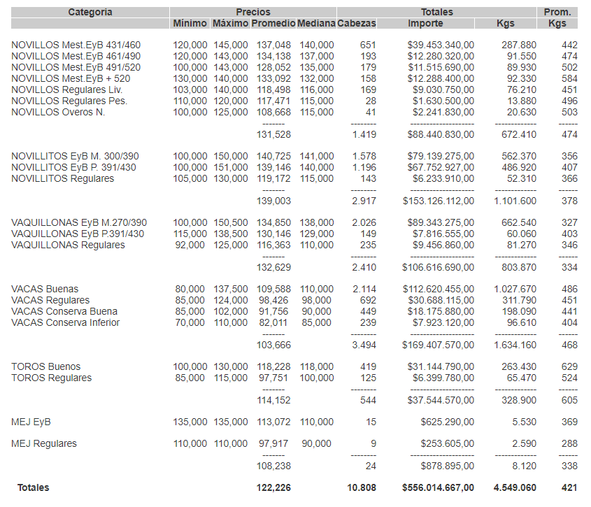 MercadosCierre Mercado de Hacienda 28 de noviembre de 2020FacebookTwitterWhatsAppTelegramEmailImpresión PRECIOS DEFINITIVOS POR CATEGORIA PARA EL VIERNES 27/11/2020MERCADO DE LINIERSMás información agropecuaria cliqueá aquí