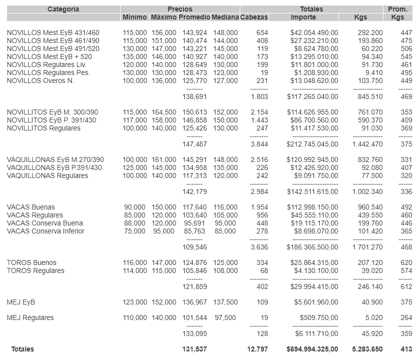 MercadosCierre Mercado de Hacienda 12 de diciembre de 2020FacebookTwitterWhatsAppTelegramEmailImpresión PRECIOS DEFINITIVOS POR CATEGORIA PARA EL VIERNES 11/12/2020MERCADO DE LINIERS Más información agropecuaria cliqueá aquí