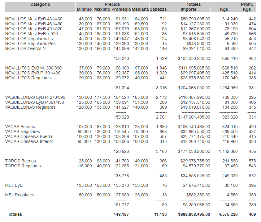 MercadosCierre Mercado de Hacienda 6 de febrero de 2021FacebookTwitterWhatsAppTelegramEmailImpresión PRECIOS DEFINITIVOS POR CATEGORIA PARA EL VIERNES 05/02/2021MERCADO DE LINIERSMÁS INFORMACIÓN AGROPECUARIA CLIQUEÁ AQUíMÁS INFORMACIÓN AGROPECUARIA CLIQUEÁ AQUí