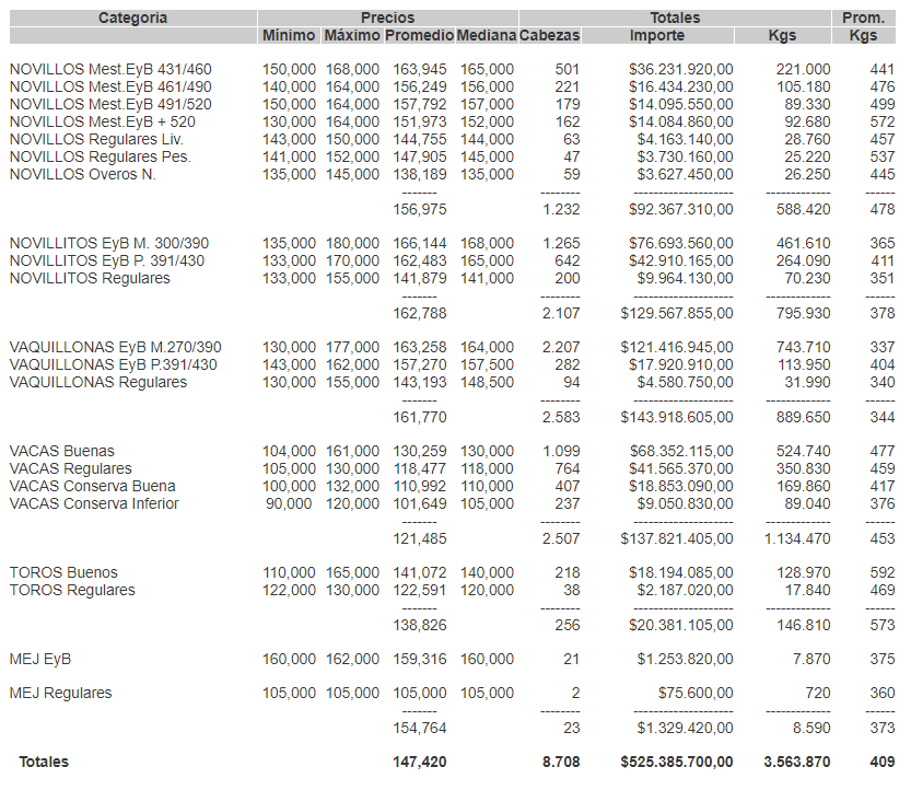 PRECIOS POR CATEGORIA PARA EL MARTES 09/02/2021