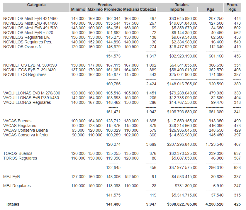 PRECIOS DEFINITIVOS POR CATEGORIA PARA EL MIÉRCOLES 10/02/2021