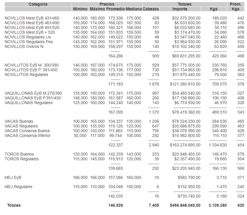 PRECIOS POR CATEGORIA PARA EL MIÉRCOLES 24/02/2021