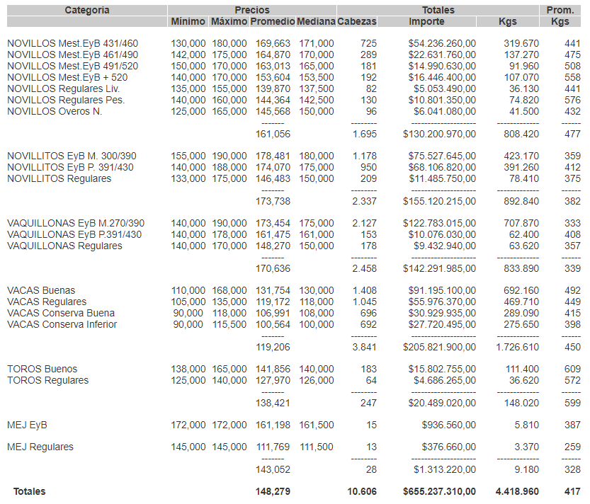 MercadosCierre Mercado de Hacienda 2 de marzo de 2021FacebookTwitterWhatsAppTelegramEmailImpresión MERCADO DE LINIERSPRECIOS DEFINITIVOS POR CATEGORIA PARA EL MARTES 02/03/2021 MÁS INFORMACIÓN AGROPECUARIA CLIQUEÁ AQUí
