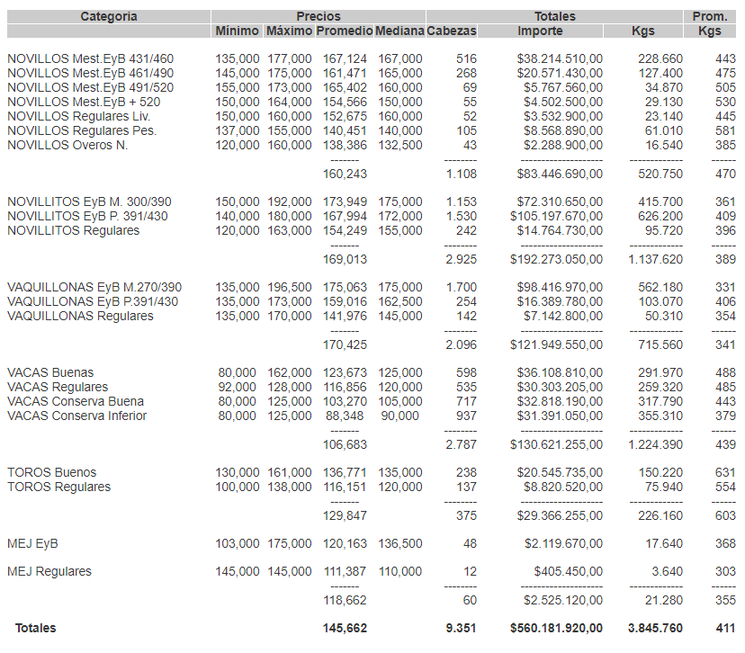 MercadosCierre Mercado de Hacienda 5 de marzo de 2021FacebookTwitterWhatsAppTelegramEmailImpresión MERCADO DE LINIERSPRECIOS DEFINITIVOS POR CATEGORIA PARA EL VIERNES 05/03/2021MÁS INFORMACIÓN AGROPECUARIA CLIQUEÁ AQUí