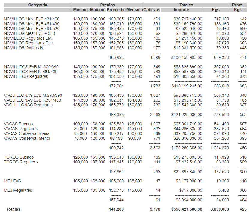 PRECIOS DEFINITIVOS POR CATEGORIA PARA EL MARTES 09/03/2021