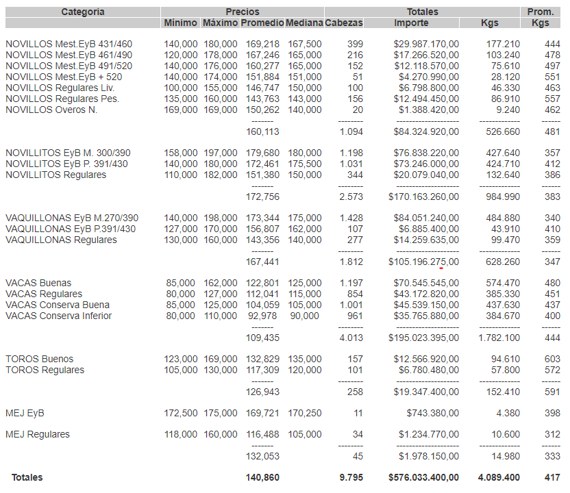 MercadosCierre Mercado de Hacienda 16 de marzo de 2021FacebookTwitterWhatsAppTelegramEmailImpresión MERCADO DE LINIERSPRECIOS DEFINITIVOS POR CATEGORIA PARA EL MARTES 16/03/2021MÁS INFORMACIÓN AGROPECUARIA CLIQUEÁ AQUí