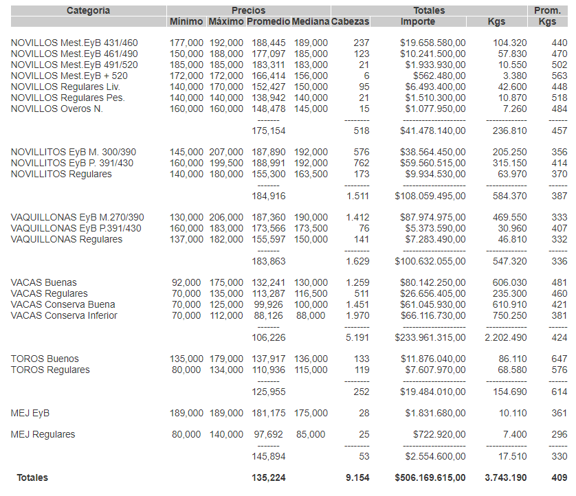 MercadosCierre Mercado de Hacienda 21 de abril de 2021FacebookTwitterWhatsAppTelegramEmailImpresión PRECIOS DEFINITIVOS POR CATEGORIA PARA EL MIÉRCOLES 21/04/2021MERCADO DE LINIERSMÁS INFORMACIÓN AGROPECUARIA CLIQUEÁ AQUí