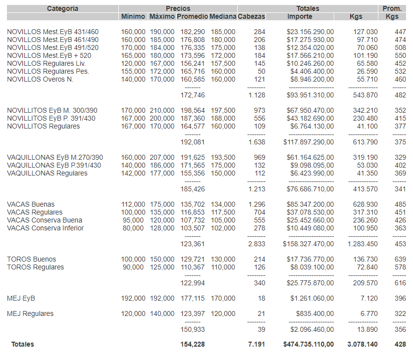 PRECIOS DEFINITIVOS POR CATEGORIA PARA EL MIÉRCOLES 01/09/2021